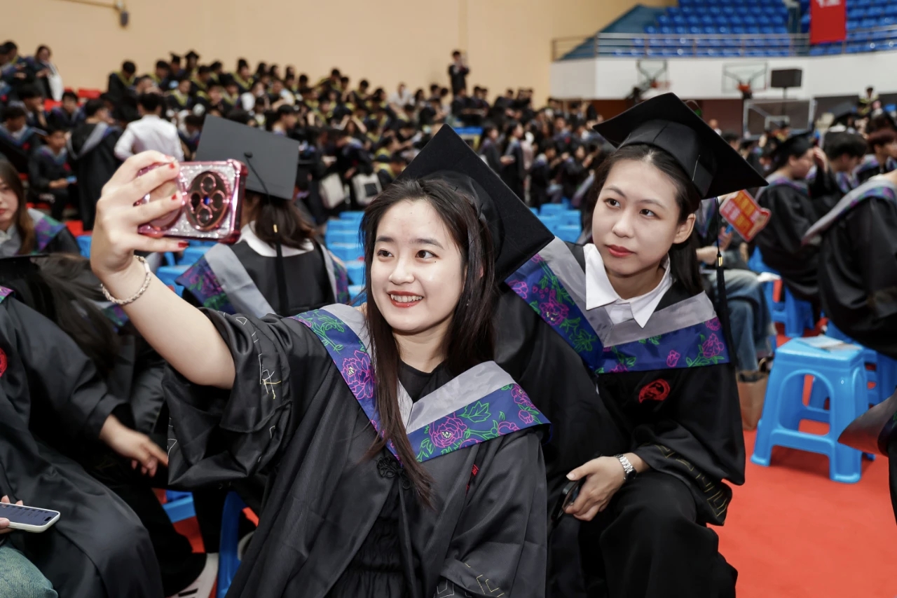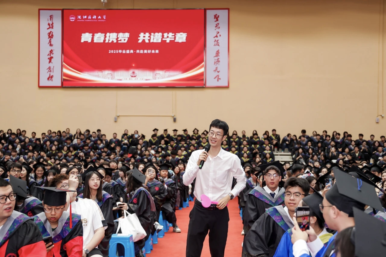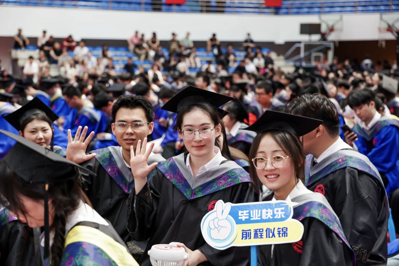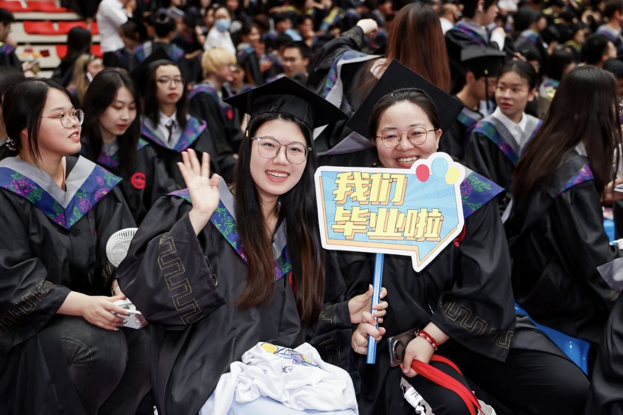典礼开幕前,现场师生观看了来自五湖四海校友们的暖心祝福,欣赏了师生共同演绎的青春曲目,师生、同窗和校友的浓浓情谊点燃全场,为庄严的毕业典礼注入温暖底色。