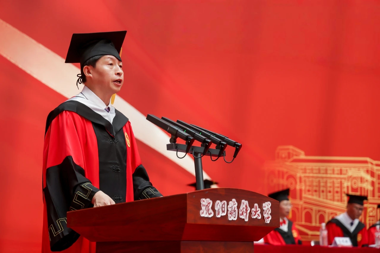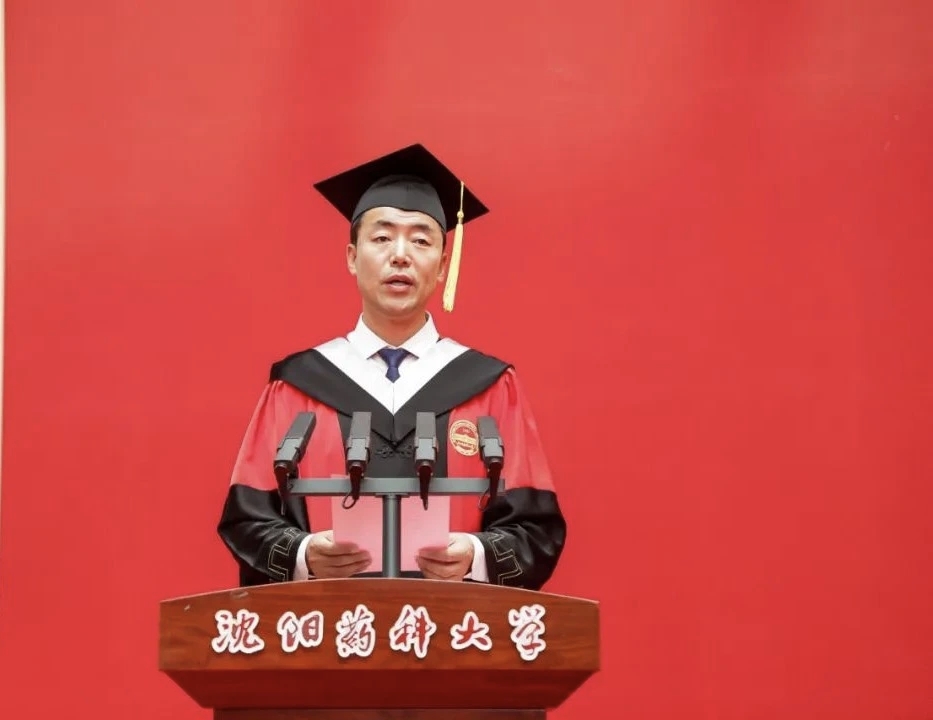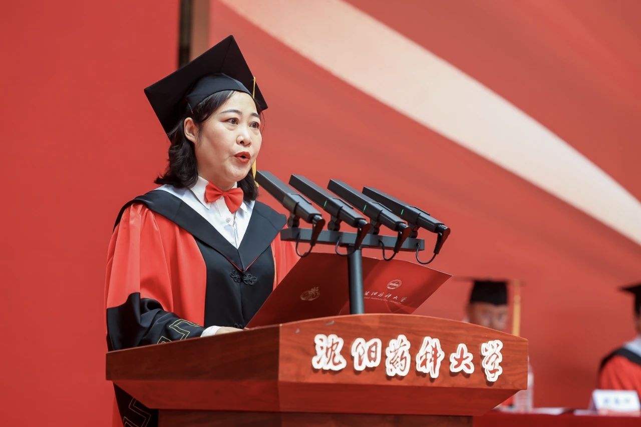长江学者特聘教授王立辉教授代表全体教师发言。他以沈药校训“团结、勤奋、求实、创新”为四剂“人生处方”勉励毕业生,以团结为舟共赴成功,以勤奋为根深耕专业,以求实为盾守护理想,以创新为剑开拓未来。他希望学子永葆沈药人的严谨与担当,在AI制药等新领域勇攀高峰,祝愿毕业生从“北国药苑的春天”出发,书写精彩人生华章。