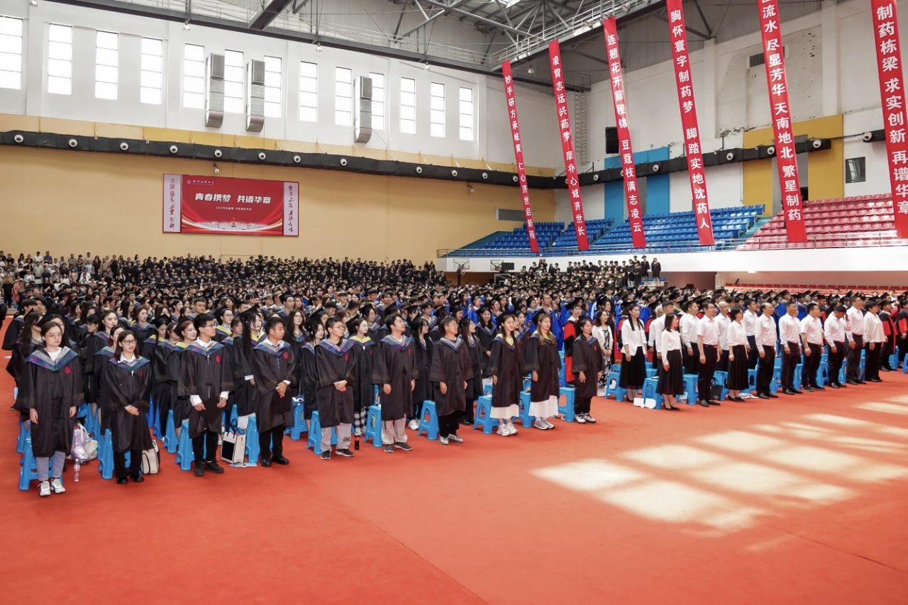 最后,现场全体师生合唱校歌《北国药苑永远是春天》典礼在奋进的校歌声中圆满落下帷幕全体教师目送毕业生启程出发