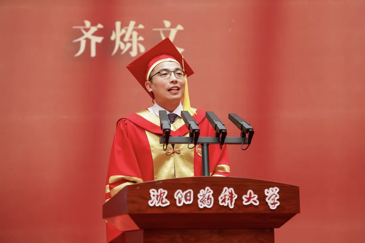齐炼文以“回望来时路、走好当下路、展望未来路”三条人生之路为脉络,赠予全体毕业生五个关键词:一是“心怀感恩”,要铭记师长培育、同窗情谊与时代机遇;二是“自信从容”,要坚信沈药赋予的专业底气和自身具备的独特价值;三是“人格健全”,要坚持以身心健康与善良品性锻造生命底色;四是“惟精惟一”,要恪守精益求精的工匠精神守护生命健康;五是“药济天下”,在医药创新中传承红色基因、服务国家需求。他勉励毕业生在平凡中铸就非凡,在细微处成就伟大,肩负起沈药人的荣光与使命,在健康中国建设中谱写时代华章。