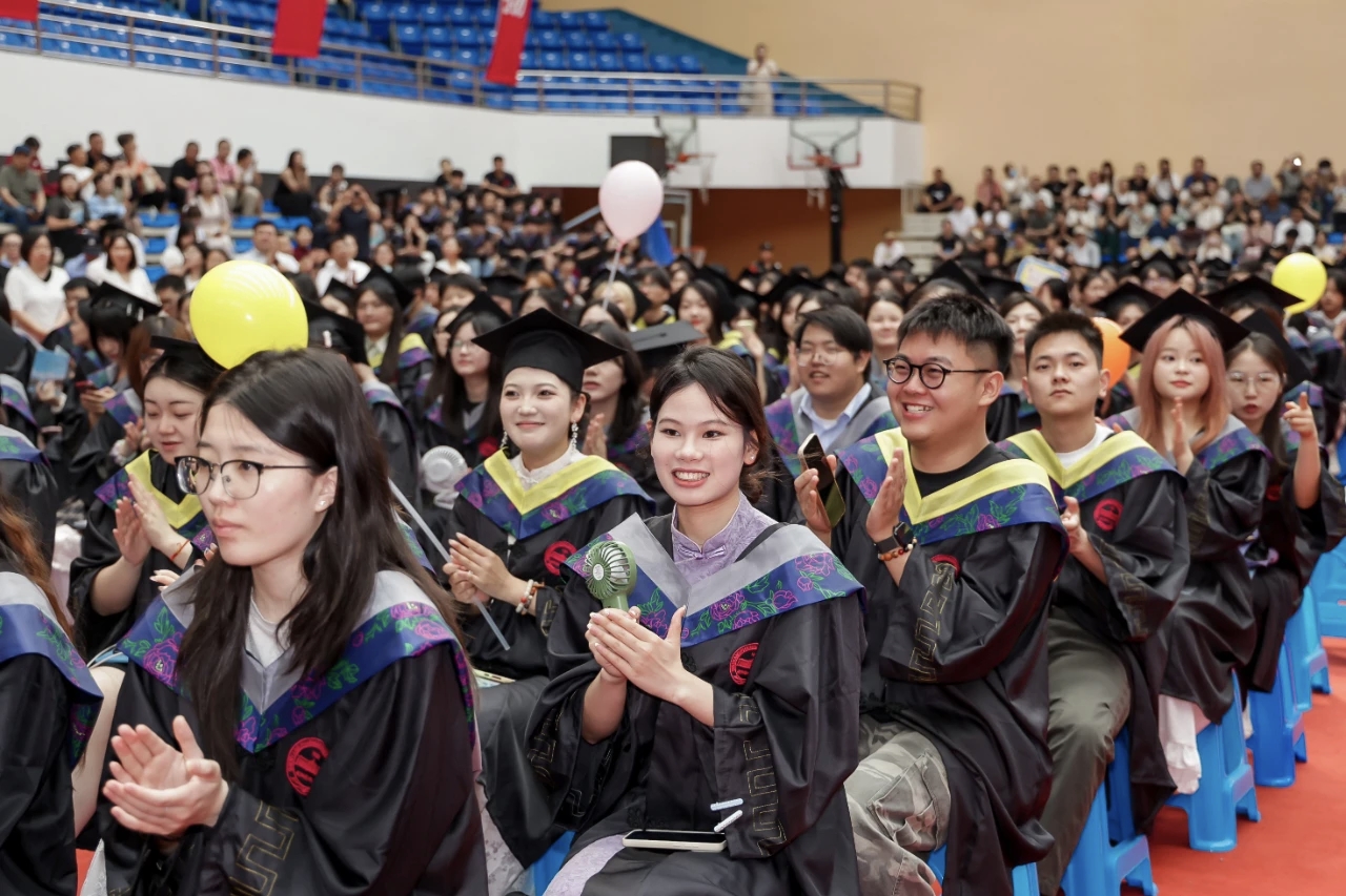 6月25日上午,betway唯一官网2025届毕业典礼暨学位授予仪式在南校区文体馆成功举行。校党委书记高明宇,校党委副书记、牵头负责学校行政工作副校长齐炼文,学校领导班子成员关雪峰、宋少江、路金才、翟鑫、卢文春,以及校学位评定委员会全体委员出席典礼。我校50期校友、湛江寸草制药有限公司执行董事吴景富受邀出席。党委组织部、党委宣传部、党委统战部、各相关职能部门及学院负责人,教师代表、2025届毕业生及部分学生家长近3000人参加典礼。典礼由关雪峰主持。