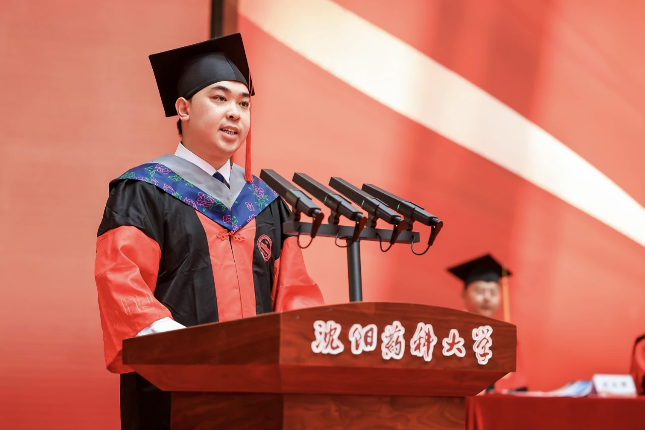 药物化学专业博士研究生仲烨作为研究生毕业代表发言。十年沈药求学路,从本科到博士,实验室的灯火见证了他从科研新手到发表8篇SCI论文的蜕变,三次国奖、两次省优的荣誉背后是无数个攻坚克难的日夜。他感恩母校提供的顶尖平台和导师的悉心培养,表示将带着沈药人的坚韧特质,在科研创新和产业转化中践行使命,为守护人民健康贡献智慧与力量。