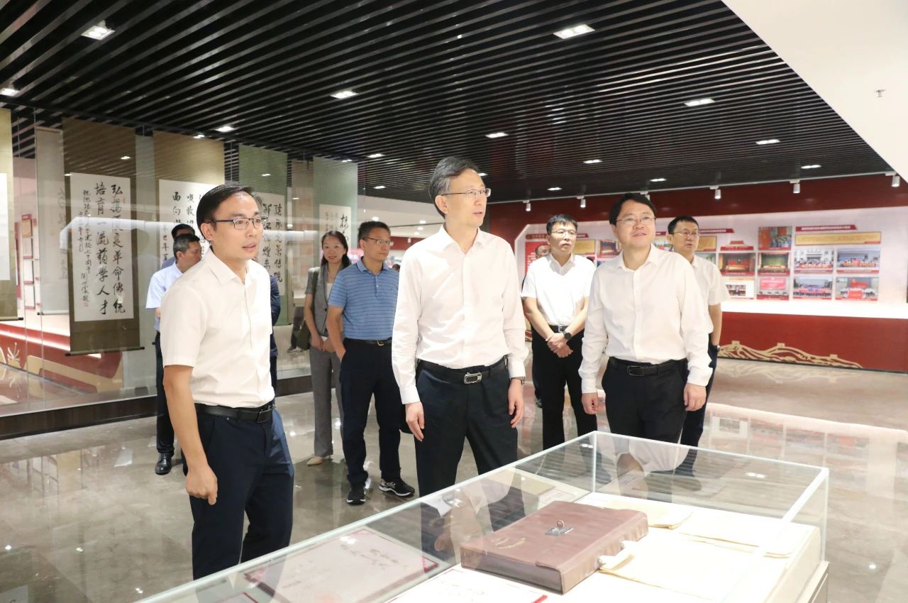 杨胜参观了学校校史馆,调研考察了中药质量控制技术国家地方联合工程实验室和基于靶点的药物设计与研究教育部重点实验室,认真听取了学校办学历史和办学成绩,详细了解了科研平台的研究方向、核心技术突破、科研成果转化应用以及人才培养等情况,并就开展中药研究开发、服务医药产业发展以及加强监管科学研究等方面与学校进行深入交流。